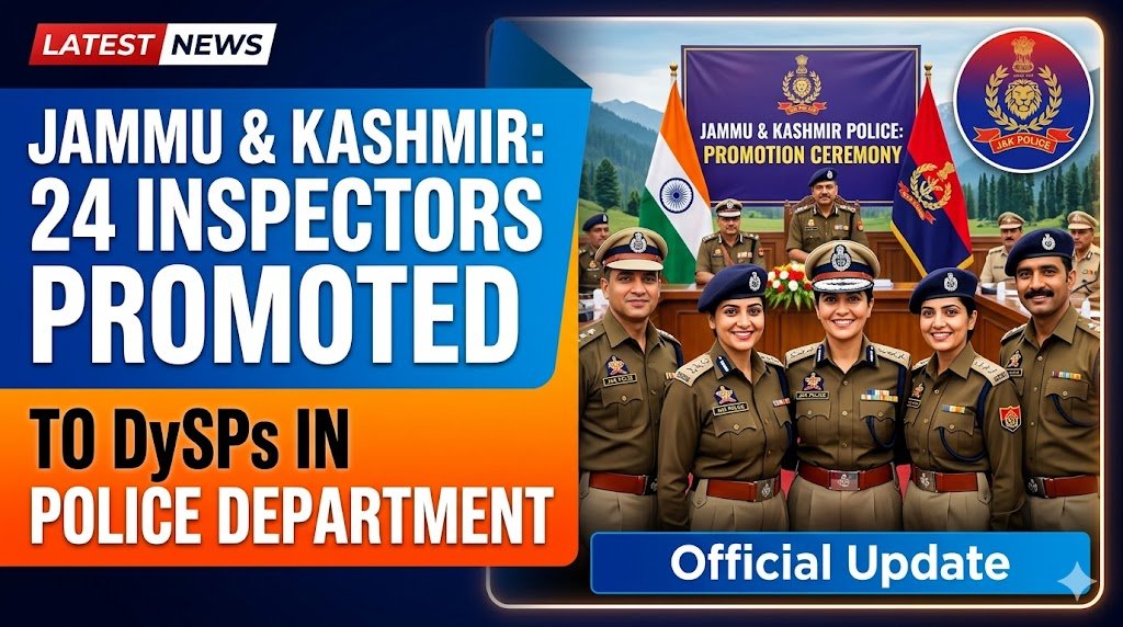 The Jammu & Kashmir Government has ordered the promotion of 24 Police Inspectors to the rank of Deputy Superintendent of Police (DySP) with immediate effect.