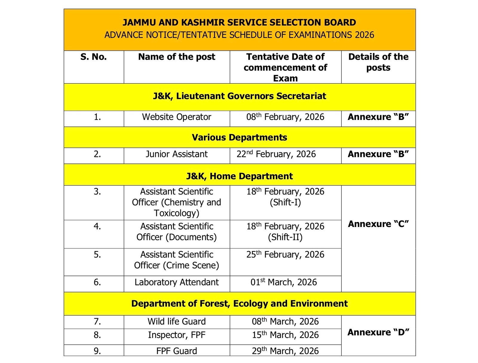 The official notice, dated 16 January 2026, confirms that the examinations will be conducted tentatively as per the schedule mentioned in Annexure “A” of the notice. Candidates are advised to start preparing accordingly and keep track of further updates.