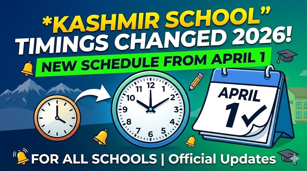 The Directorate of School Education Kashmir (DSEK) has officially revised school timings across the Kashmir Division. The new schedule will come into effect from April 1, 2026, for all government and recognized private schools.